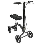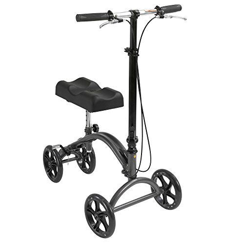 The DV8 Steerable Knee Walker provides a comfortable pain-free alternative to crutches that often hurt from prolong use under the arms. This is certainly ideal for those individuals who are recovering from major or minor foot surgeries, breaks, sprains, and even amputation or ulcers of the foot. The Steerable Knee Walker is a well-made and stylish clutch alternative and is easy to use! It can be adjusted without tools to help meet your needs, allowing for maximum movement. This is also equipped with large casters and a dual frame design that provides the user with maximum control when indoors or outdoors. This knee walker also comes with a "tool free" height adjuster, and hand brakes for the best safety and security. The leg pad incorporated can also be adjusted to the user's liking! It provides increased stability and makes the user feel most comfortable. The steering column is foldable, it is easy to store because it folds without tools, which makes it good for travel and moving around.
