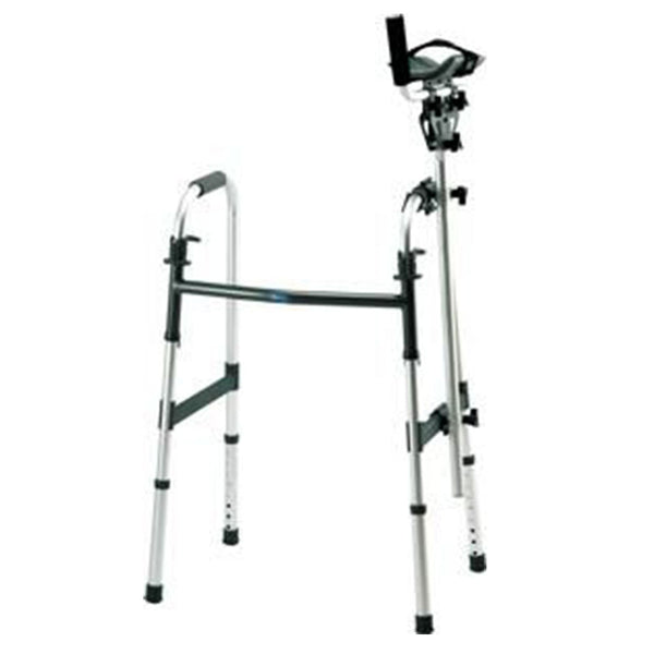 - Thick, vinyl-covered pad with heavy-duty Velcro strap securely holds arm in place on walker.