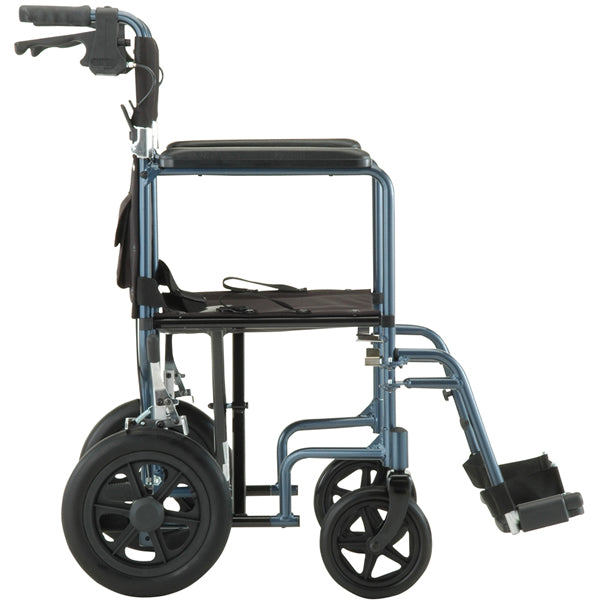 Nova-Ortho Lightweight Transport Chair with 12" Rear Wheel 40-1/2" H x 23-1/2" W x 28-4/5" D, Blue, 19-1/2" H x 20-1/2" W Seat Dimension, 300 lb Weight Capacity