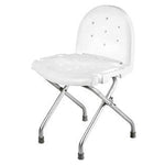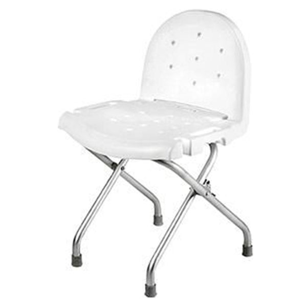 Invacare Folding and Mobile Shower Chairs offer bathing comfort and support and fold easily for storage or travel. Features include a contoured blow-molded seat and optional backrest, anodized aluminum frame and fixed-height legs.