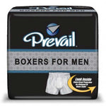 Prevail? Boxers for Men, medium, are disposable undergarments designed for active adults that are wanting the appearance and feel of regular boxer style underwear while needing the security and protection when unexpected leakage occurs. The Prevail? Boxers for Men, medium, will be the product you can depend on for maximum absorbency and keeping up with your active lifestyle. Prevail? Boxers for Men, medium, are specifically made for men with many features for both leakage protection, comfort, and style. Prevail? Boxers for Men, medium, are made with a maximum absorbency core that is not noticeable yet works to provide extra absorbency when you need it most. The underwear is also shaped like boxer underwear to create a more relaxed fit. The waistband has breathable zones with a super soft cloth-like outer fabric. Designed with a QUICK WICK? superior absorption diamond print, this fabric helps to prevent the skin from becoming irritated which happens with more traditional plastic products. In addition to comfort, the Prevail? Boxers for Men, medium, will help to control undesirable odors and are excellent at providing the user protection both during the day and at night without adding a lot of bulky materials. Prevail? Boxers for Men, medium, made with a strong elastic waistband, can accommodate a waist size of 28 to 40 inches.